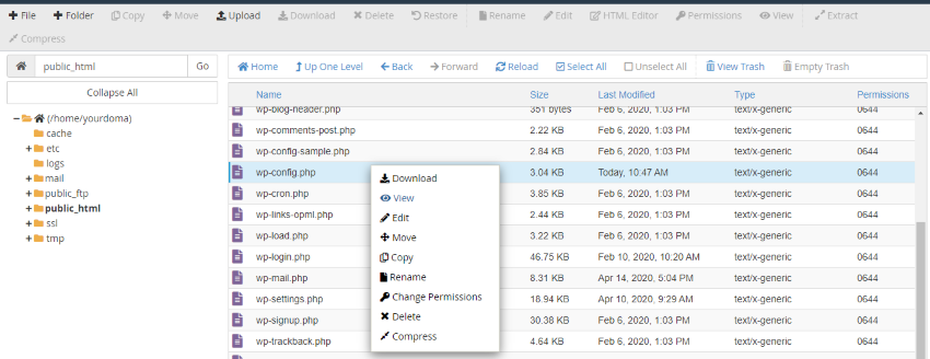 - Navigate to your Public_html folder and locate the wp-config file