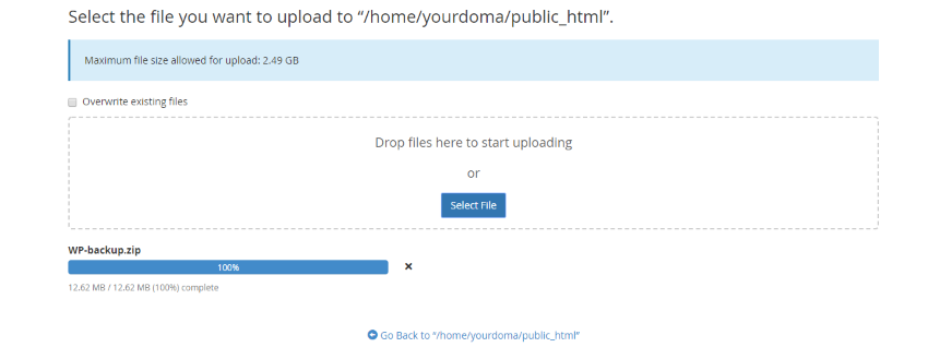 3. Select Upload and upload your zipped website files.