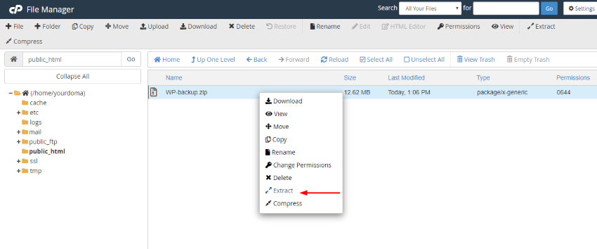 5. Extract the zip file by right-clicking on the zip file and select Extract.