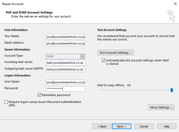 4.3.) Click on "More Settings" - Outgoing Server tab