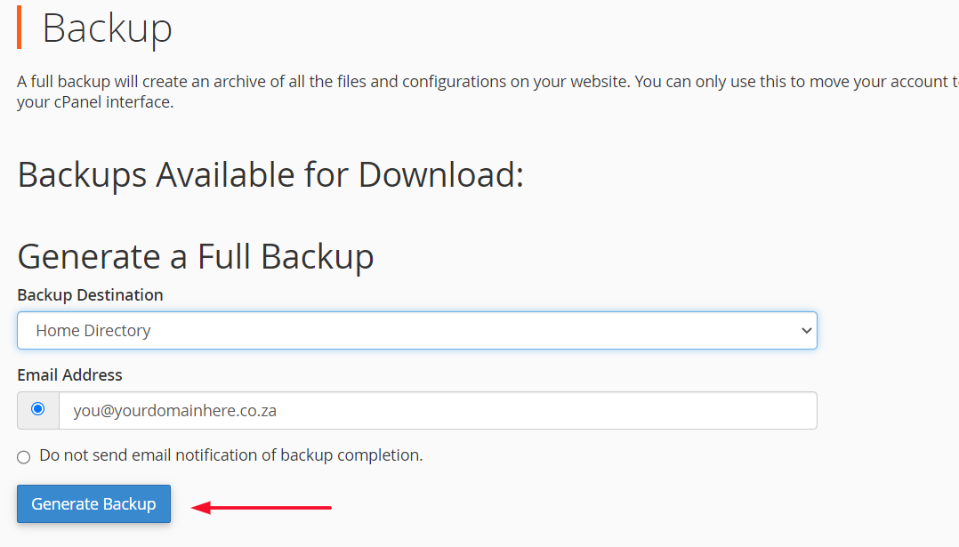ii.) Email Address -> A preferred email address for you to be notified of the completion of the backup